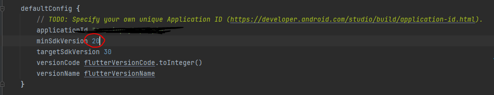 ์ฑ ์์ค์ build.gradle ์์ผ๋ก ์ด๋ํ์ฌ minSdkVversion์ 20์ผ๋ก ๋ง์ถ๋๋ก ํ๋ค.