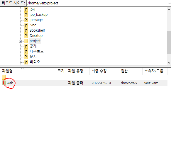 ๋์ ๊ฒฝ์ฐ๋ /home/veiz/project์ webํด๋๊ฐ ์กด์ฌํ๊ฒ ๋์ด์๋ค.