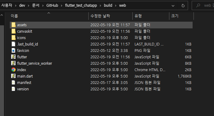 ํ๋ก์ ํธ ์ฝ์์ flutter build web ์ ์ ๋ ฅํ๋๋ก ํ์.